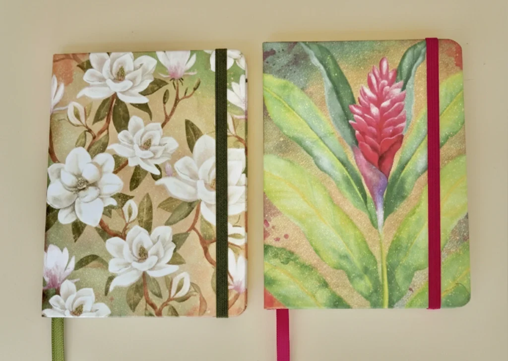 Cadernetas com ilustrações exclusivas e páginas em branco para você se expressar com liberdade.