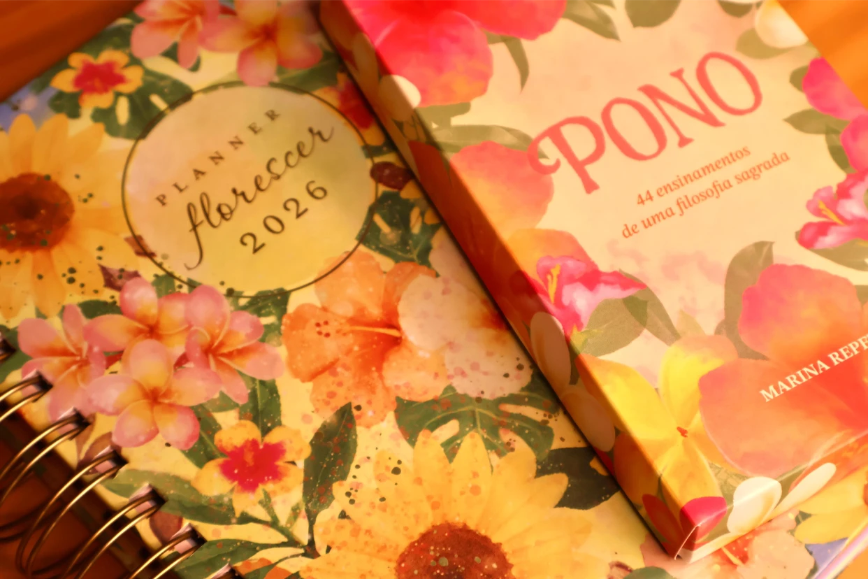 Duas criações que se encontram na mesma essência: o Planner Florescer 2026 e as Cartas Pono, que trazem o convite para viver o novo ciclo com alma e consciência.